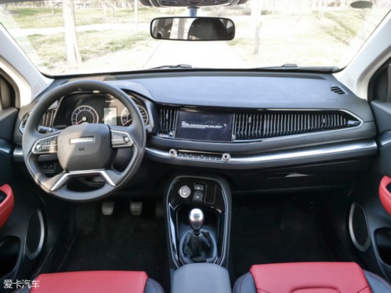 哈弗H2s的内饰采用了中控台向驾驶员一侧倾斜的设计,物理按键的数量已经大幅减少,更多的功能控制则需要通过触摸式中控显示屏来实现。副驾驶仪表台一侧的空调出风口则采用了贯通式的设计。