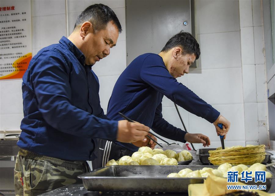 因为人手紧张,巴图散(左)走进后厨帮忙做午餐(2月27日摄)。 新华社记者关俏俏摄