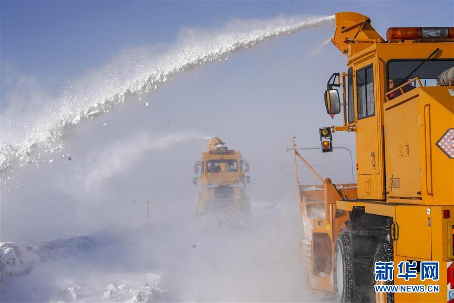 抛雪车在玛依塔斯风区扫雪(1月15日摄)。 新华社记者赵戈摄