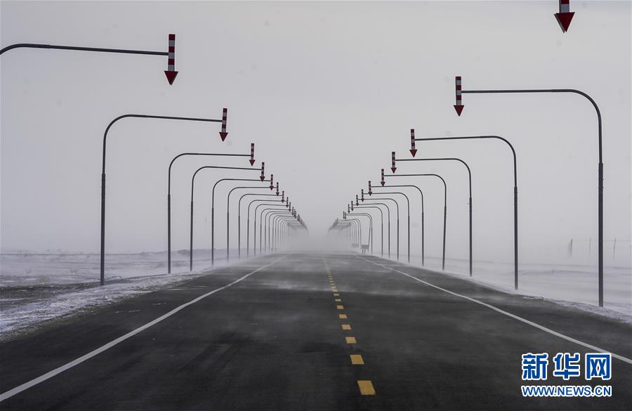 这是玛依塔斯风区里的省道201线,左右两侧是示宽标志(1月15日摄)。 新华社记者赵戈摄