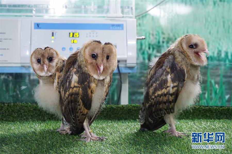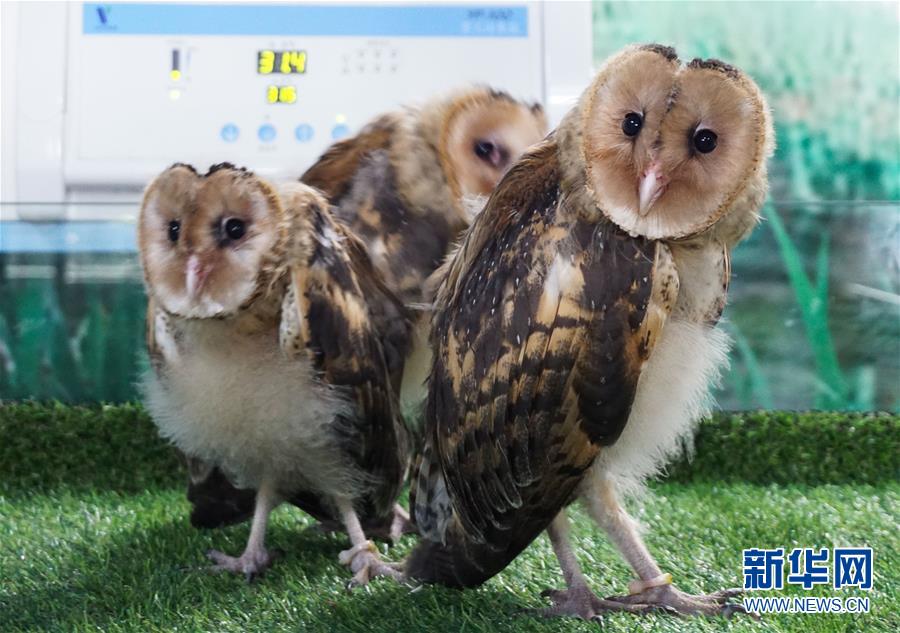 广州长隆飞鸟乐园鸟类繁育中心育雏室里的两月龄猴面鹰幼鸟(6月14日摄)。新华社记者 刘大伟 摄