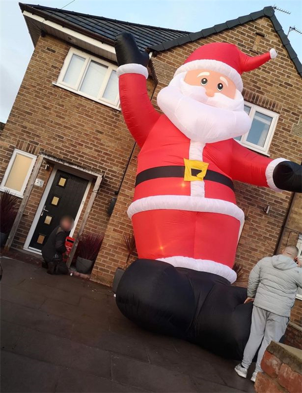 Matty 说,他需要五个邻居来帮他用绳子把这个巨大的圣诞老人拴起来,因为外面开始刮风了。“随着风越来越大,我开始有点担忧。早上醒来拉开窗帘往外看的时候,会有一个大大的圣诞老人扑面而来。”(中国青年网编译报道)