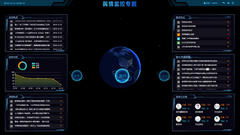 在“智慧龙华”建设的大背景下,龙华区政府积极开展政府智慧化建设,打造“智慧龙华互联网舆情专题”,探索由数据到数字政府思维和工作模式的转变,提高政府社情民意感知和舆论引导能力。该“专题”由中科闻歌提供大数据、人工智能和新媒体技术等前沿技术支持,以现代化治理思路实现了互联网舆情高质高效管理。