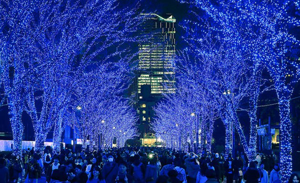 据《朝日新闻》网站报道,东京涩谷区涩谷公园大道至代代木公园的榉树林荫路两侧近日起挂起蓝色彩灯,推出了今年的“青之洞窟SHIBUYA”活动。约60万个LED灯将街道装饰得充满节日的梦幻气氛。