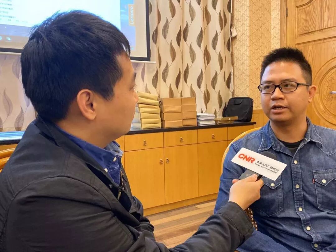 记者何伟奇采访鹤山市农业农村局负责人钟振超(右)