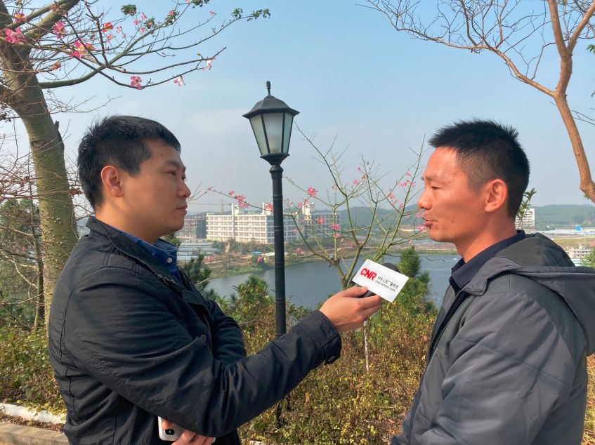 记者何伟奇采访农庄生产总监胡永耀(右)