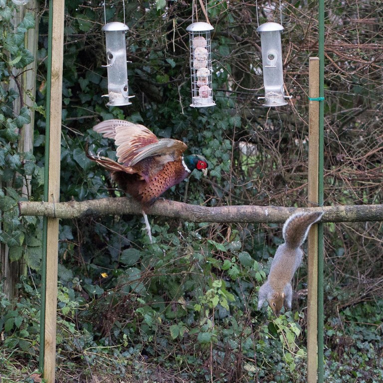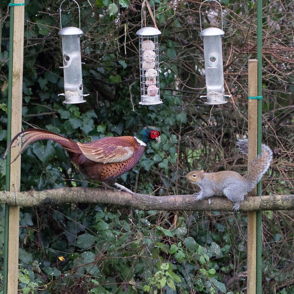 在英国多塞特郡的一个花园里这两只动物互相凝视,因为那里安装了一个喂鸟器。最终,这只野鸡利用自己更大的体型吓跑了松鼠。据悉,69岁的Scott Chappell在接受了肾脏移植手术后,便开始在花园里安装喂鸟器,以缓解在家无聊的时光。这场离奇的冲突发生在12月28日。Scott说:“我很荣幸能生活在这样一个美妙的地方,每天来花园里的野鸡和松鼠都很可爱。”(中国青年网编译报道)