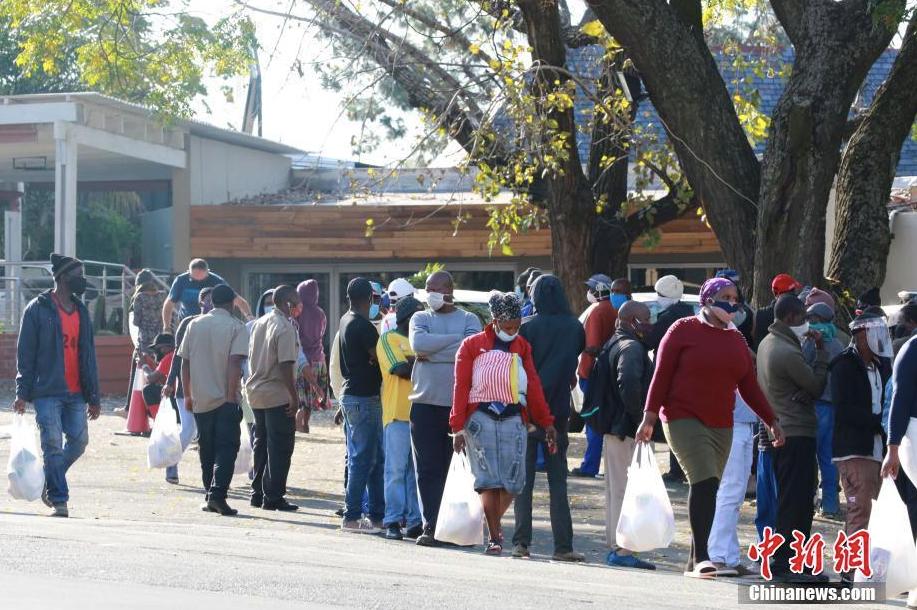 在南非约翰内斯堡一社会救济站,领取救济食品的民众排成长龙。 图片来源:中国新闻网