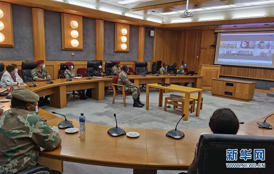 5月8日在南非比勒陀利亚拍摄的“中南新冠肺炎疫情防控经验分享国际交流会”现场。图片来源:新华社