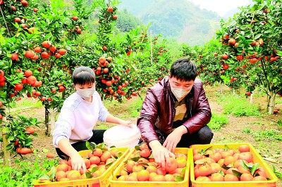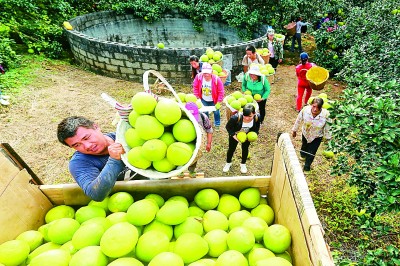 天峨县贫困户在采收红心蜜柚。王明福摄/光明图片