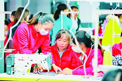 天峨县贫困户在扶贫车间就业。张玉兰摄/光明图片