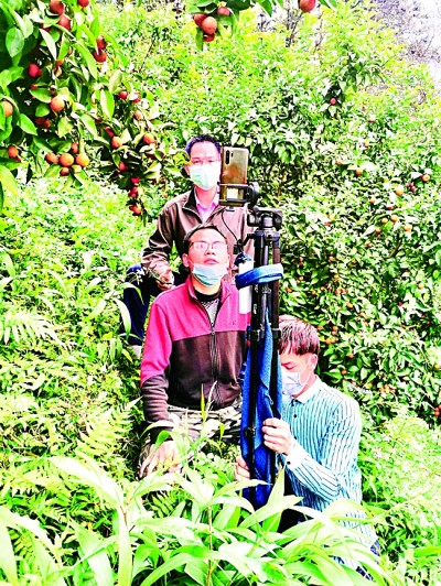 梁昌旺在电商扶贫年货节直播带货。天峨县委宣传部供图