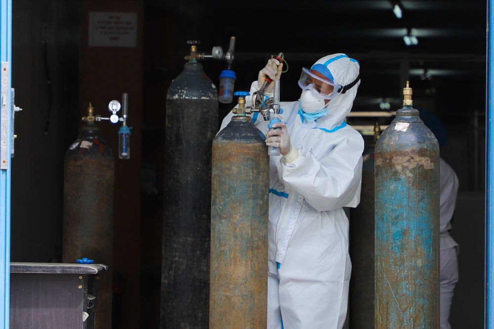 8月17日,在埃塞俄比亚首都亚的斯亚贝巴附近的蒂鲁内什-北京医院,医务人员检查给新冠确诊病人使用的供氧设备。新华社发(迈克尔·特韦尔德摄)