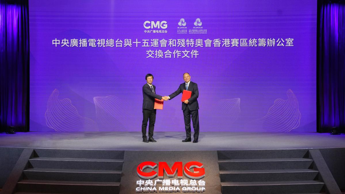 活动上,薛继军与十五运会和残特奥会香港赛区统筹办公室主任杨德强交换了《十五运会和残特奥会香港赛区主转播机构服务协议》。根据协议,中央广播电视总台成为十五运会和残特奥会香港赛区主转播机构,将负责香港赛区国际广播中心的运营,以及场地自行车、击剑、铁人三项、沙滩排球等赛事的公用信号制作。