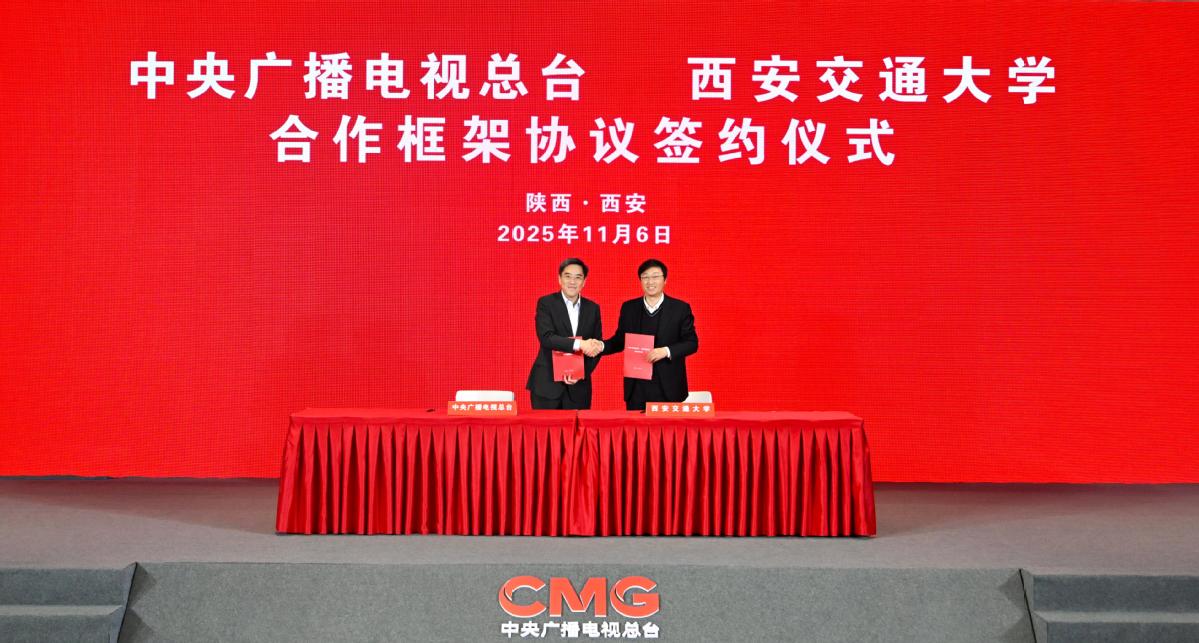 活动上,中央广播电视总台与西安交通大学签署合作框架协议。根据协议,双方将搭建平台,整合媒体、高校及社会资源,在产教融合、协同育人以及培养全媒体传播创新人才、承担国家全媒体传播体系建设任务等方面进一步加强战略合作。