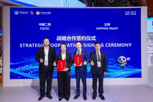 中建二局装饰公司作为进博会中国建筑股份有限公司国资委中央企业交易团成员,与国际知名企业立邦涂料(中国)进行深入交流与合作,签订战略采购协议,共同拓展合作新空间、携手实现共赢发展。