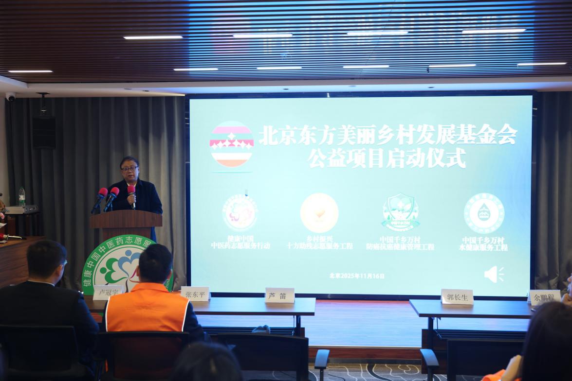 启动仪式简约高效,三阶段流程与四大项目板块有机衔接,充分彰显公益行动的务实作风。北京东方美丽乡村发展基金会理事长芦笛在发言中阐述了基金会以“健康赋能乡村”为核心的使命愿景,聚焦乡村健康服务短板,详细介绍了公益项目的实施路径。执行秘书长张东平深耕公益十余年,现场分享了从个人成长、企业担当到社会和谐的多维公益价值理念,并向全球发出中医药志愿者招募倡议。