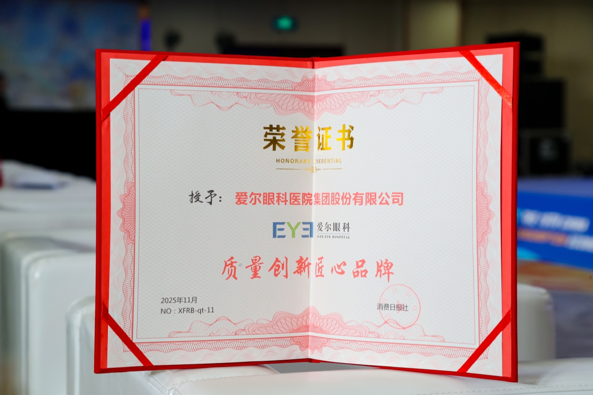11月28日,第十九届中国消费经济论坛在北京举办,爱尔眼科医院集团股份有限公司(以下简称“爱尔眼科”)凭借其在眼科医疗领域的创新实践与品质坚守,从众多参评企业中脱颖而出,斩获 “2025质量创新匠心品牌”奖项。这一荣誉不仅是对爱尔眼科在创新能力、服务质量与社会责任等维度综合实力的高度认可,更是对其二十余载深耕眼健康领域、以匠心守护光明,对社会和行业所作贡献的充分肯定。