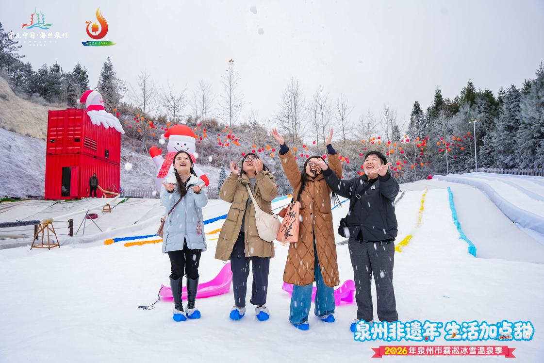随着强冷空气持续,德化石牛山、九仙山雾凇进入最佳观赏期。2026年1月23日,以“泉州非遗年·生活加点甜”为主题的泉州市雾凇冰雪温泉季在九仙山景区正式启幕。本次活动由泉州市文化广电和旅游局、德化县文旅经济发展总指挥部联合主办,德化县文化体育和旅游局与赤水镇人民政府、南埕镇人民政府、雷峰镇人民政府、国宝乡人民政府共同承办,通过“主会场+分会场”联动模式,推出雾凇观赏、温泉康养、陶瓷手作等十余项特色活动,打造南方罕见的“冰雪+温泉+文化+旅游+体验+消费”文旅体验。活动将持续至2月底,预计吸引全国游客超百万人次。