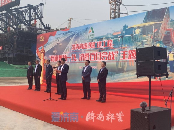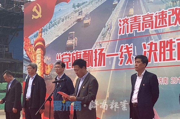 济青改扩建工程是省委省政府确定的全省公路建设重点工程中的一号工程,是交通运输部确定的唯一的高速公路改扩建绿色科技示范项目,是新旧动能转换省级重点项目。经过四年奋战,工程建设进入了冲刺收尾的关键时期,为充分发挥党建引领和保障作用,充分发挥基层党组织战斗堡垒和党员先锋模范作用,山东高速股份有限公司党委组织开展了“党旗飘扬一线,决胜百日会战”主题活动,这既是百日会战的“集结号”,又是决战决胜的“冲锋号”。