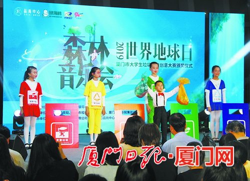 4月20日晚,世界地球日森林音乐会在JFC品尚中心精彩上演,活动现场,2018厦门市大学生垃圾分类创意作品大赛颁奖仪式也同期举行。
