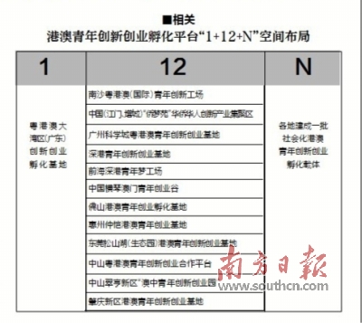 到2025年,广州南沙、深圳前海、珠海横琴港澳青年创新创业示范基地辐射带动效应进一步发挥,珠三角9市各建设至少一个港澳青年创新创业基地,以粤港澳大湾区(广东)创新创业孵化基地为龙头的“1+12+N”孵化平台载体布局基本建成,创新创业生态链进一步完善,港澳青年的国家认同感、文化归属感、生活幸福感得到全面提升。