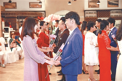 作为活动的主办方,顺义区妇联的相关负责人在现场为新人们进行了证婚,并联合顺义区仁和镇、龙湾屯镇、顺美服装公司等主办方和承办方,为新人们赠送了西服和小礼品,共同欢度七夕节。
