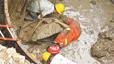 消防接警后立即出警,但由于现场客观条件十分不利,消防员只得用双手将工人从淤泥中挖出,最终经过两小时努力,坠井工人被成功救出。
