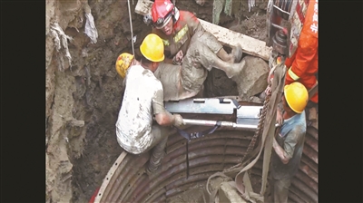 8月10日,朝阳区豆各庄一建筑工地发生工人坠井事故,工人双腿被埋压,周围不断有水渗进,情况危急。