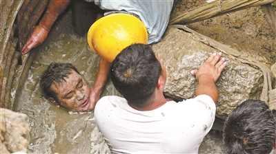 坠井男子除头部外全身都没入淤泥中