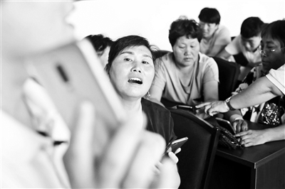 学员年龄普遍偏大,王丹讲解如何使用手机时,要逐步演示
