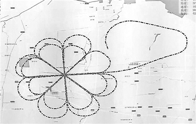 9月7日14时06分,C919大型客机104架机从中国商飞试飞中心东营基地起飞,在完成导航LOC全向性科目试飞过程中,画出了一个大大的花朵造型“月饼”。