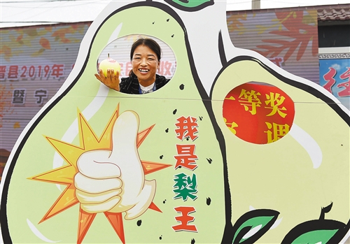 ▼河北省宁晋县苏家庄镇举办庆丰收活动,100多名果农带着梨果竞争“梨王”。刘永杰摄(中经视觉)