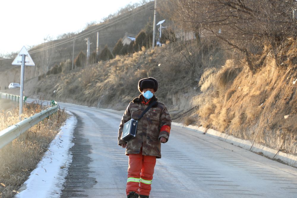 崾岘村山大沟深,全村417户1700多人,最远的两个自然村组相距10多公里,村民分散居住。春节期间,海明贵每天早上8点出门,中午回家吃饭,给喇叭充电,下午接着出门继续宣传,直至晚上8点才收工回家。“一天骑行40多公里,烧一箱油。”为了能让村民听明白防疫宣传内容,海明贵始终将摩托车的速度降至最低。
