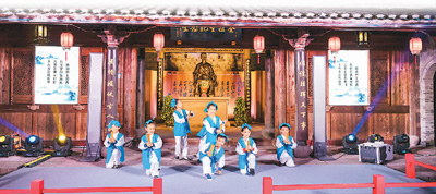 在第二届全祖望文化节期间,孩子们在全祖望纪念堂前的舞台上表演节目。