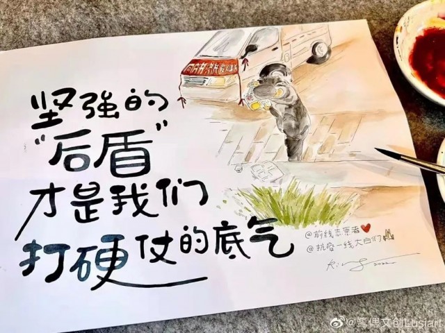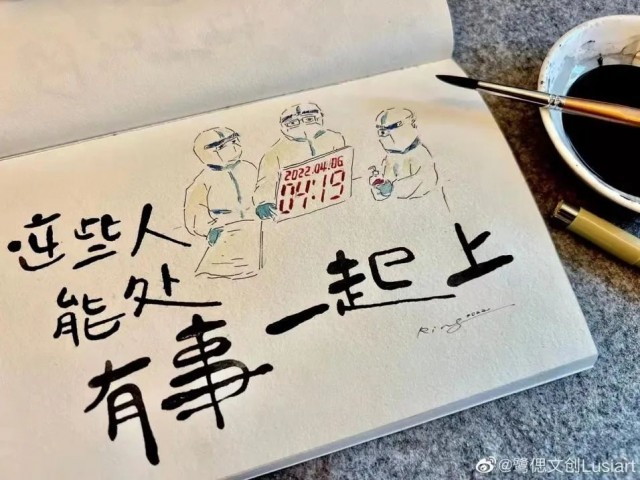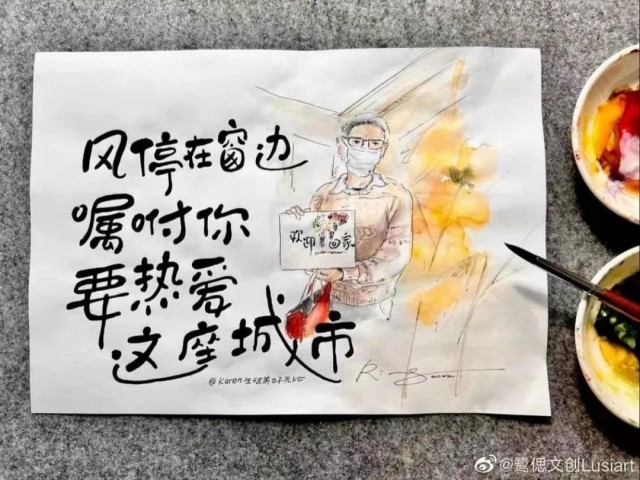 上海本轮疫情中,周俊一直和同伴坚守在抗疫一线。大家的鼓励和支持,让周俊非常感动,她在朋友圈晒出了2020年的这幅宅手绘作品。