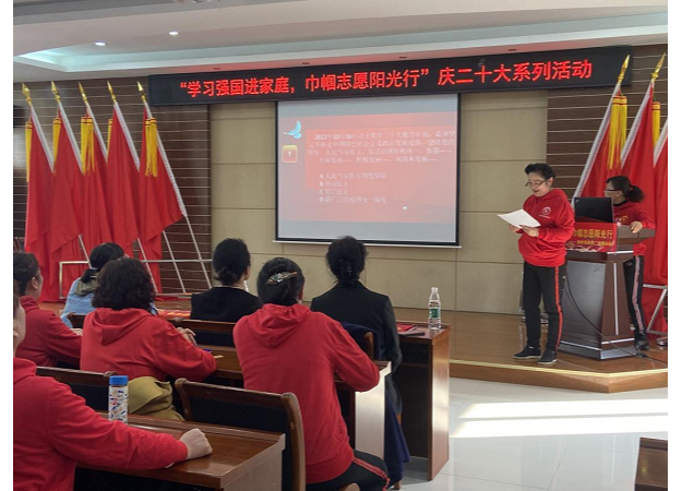 为了提高广大妇女同志学习的积极性、主动性,不断提升理论水平和政治素养,真正发挥“学习强国”学习平台作用,巩固学习效果,力求入脑入心,近日,江苏省扬州市邗江区双桥街道社会事业局联合扬州市妇联、体育广场舞协会、邗江区文化馆和石桥社区共同举办“学习强国进万家,巾帼志愿阳光行”庆祝活动。