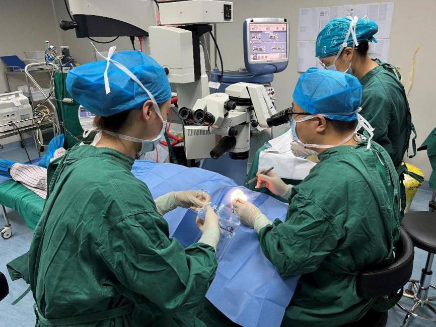 医生为赵桂起实施白内障手术,帮助他恢复光明。