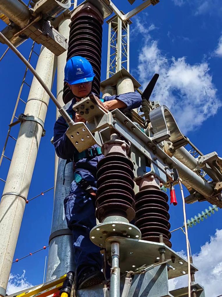 11月10日,南方电网云南曲靖供电局变电修试所工作人员在110千伏太平哨变电站进行融冰电缆搭接及升流试验工作。(徐志杰 摄)