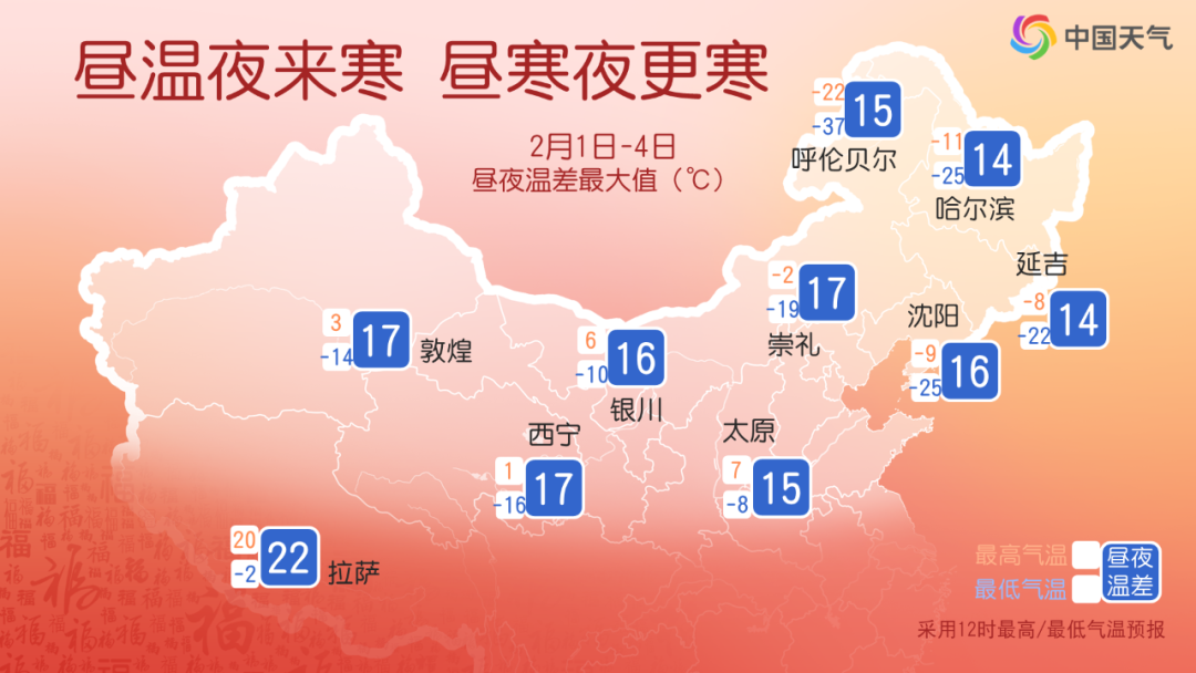 对北方而言,未来几天气温将持续处于偏低状态,像哈尔滨、长春、沈阳,今后7天多数时间最高气温都在-10℃以下,最低气温则多不足-20℃。从早冷到晚!