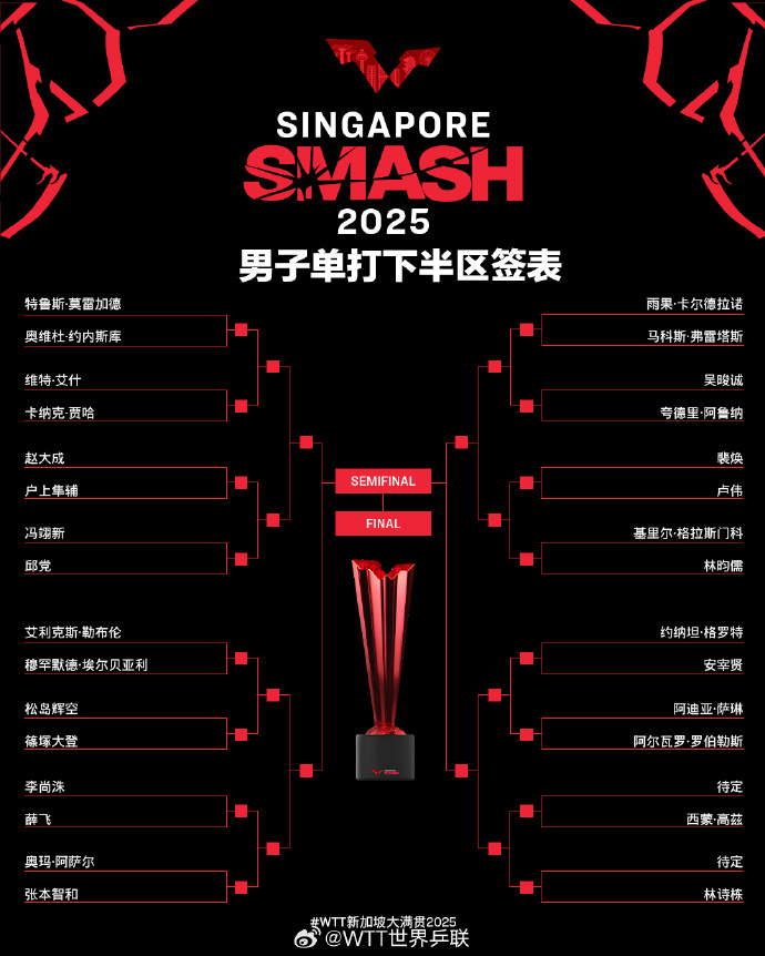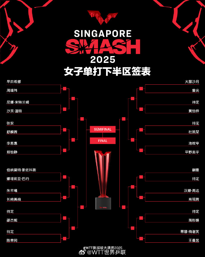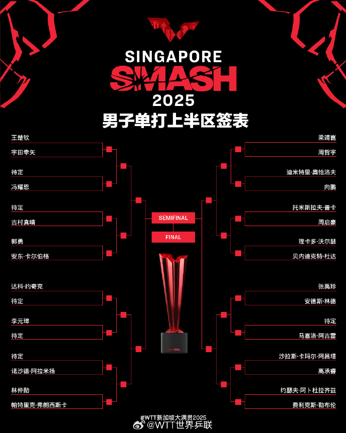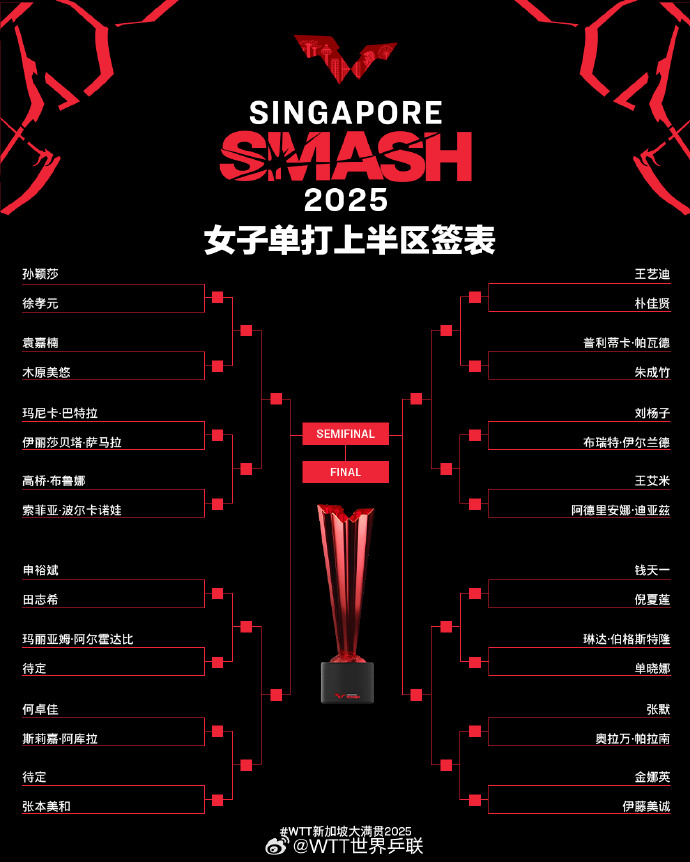 北京时间1月31日,2025WTT新加坡大满贯抽签仪式举行。