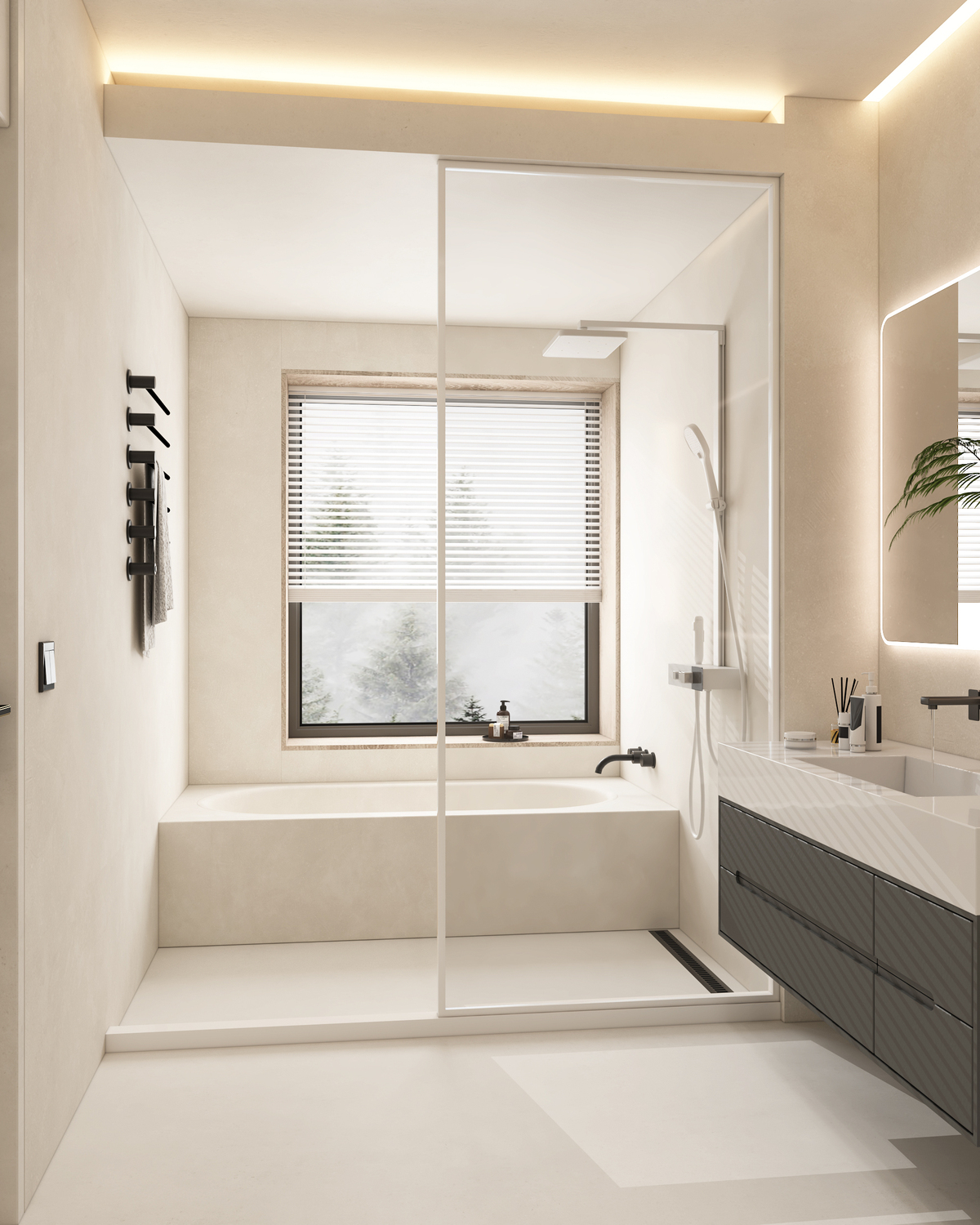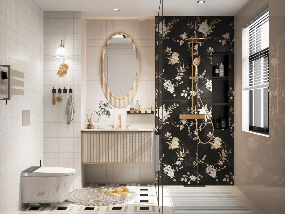 智能灯镜支持色温无级调节,清晨用冷白光唤醒精神,夜晚用暖黄光舒缓身心;淋浴区内置感应灯带,人来自动亮起,人走延迟熄灭,安全又节能;镜面不锈钢、微水泥、仿石纹砖等材质在光线照射下,形成丰富的光影层次,营造出静谧而高级的空间质感。在举国欢庆的日子里,一次舒适的光影沐浴,不仅洗去疲惫,更是一种精神的放松与重启。瑞尔特全卫焕新用光与影,为你的每一天注入仪式感。