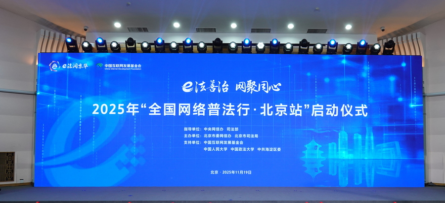 中国日报网11月20日电(记者 齐磊) 11月19日,2025年“全国网络普法行·北京站”暨收官总结活动在中国人民大学举办。活动以“e法善治 网聚同心”为主题,全面展现网络法治建设丰硕成果和“全国网络普法行”品牌活动成效。中央网信办、司法部、北京市人大常委会、中国人民大学等负责同志出席启动仪式并致辞。