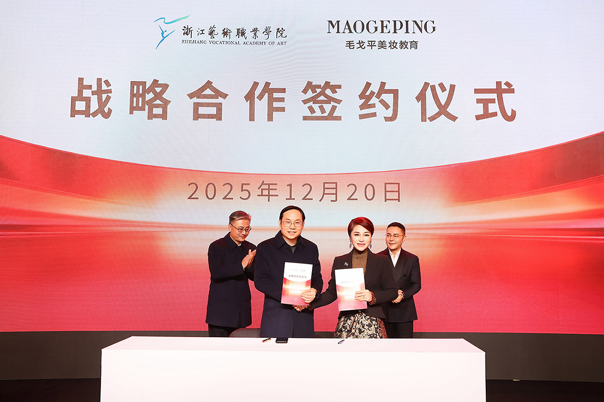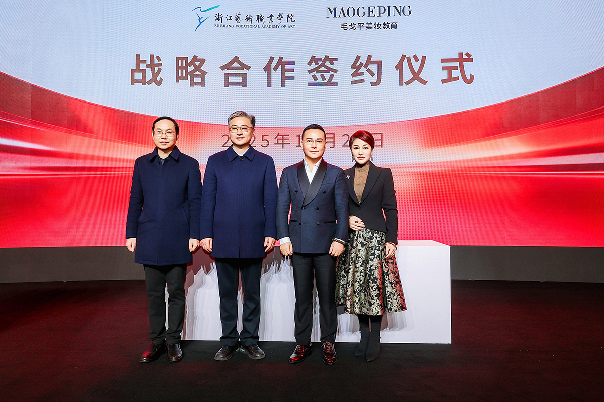 2025年12月20日,一份源于感恩的初心,一次对母校的深情回馈,在浙江艺术职业学院(以下简称“浙艺”)化作切实的行动。毛戈平先生与其夫人汪立群,作为从浙艺走出去的杰出校友,始终铭记母校的培养。他们“让中国女性美起来”的事业初心,与回馈桑梓的深厚情谊,在此刻交汇,共同开启了一次崭新的校企合作——“浙江艺术职业学院毛戈平产业学院”正式成立。