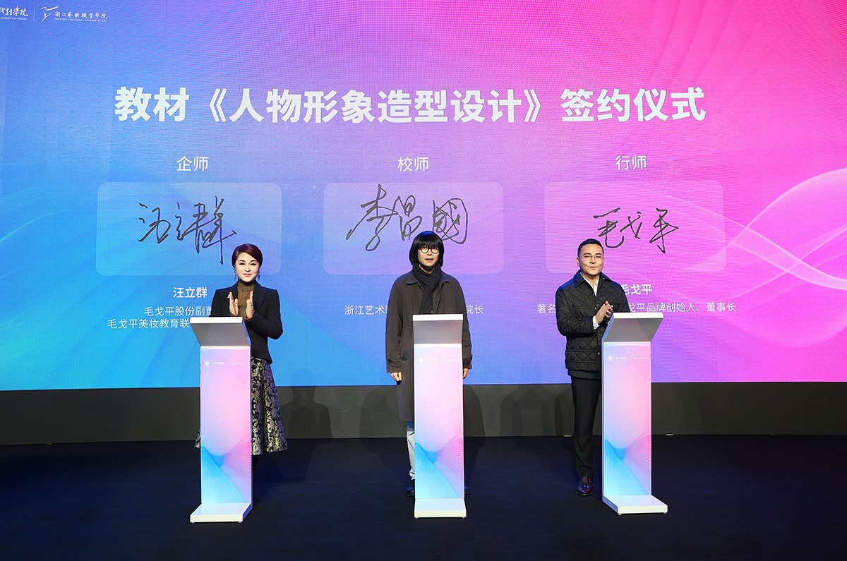 该合作不仅是本次大会上浓墨重彩的一笔,更是为了在推动职业教育高质量发展、服务文化浙江建设的时代命题下,深化产教融合,创新人才培养模式,提升服务区域美妆产业发展能力,积极向世界传递东方美学理念。因此,浙艺与毛戈平美妆教育按照“资源共享、优势互补、责任共担、利益共享”的原则组建了毛戈平产业学院。